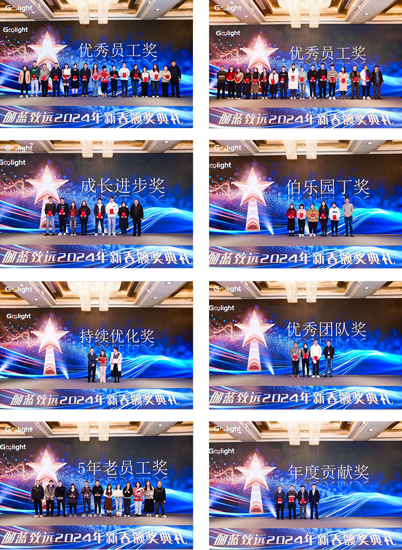 为表彰积极进取、敬业实干和有突出贡献的优秀个人和团队,公司在年会现场颁发了“优秀员工奖”、“成长进步奖”、“伯乐园丁奖”、“持续优化奖”、“年度贡献奖”、“优秀团队奖”和“5年老员工”等7项大奖。