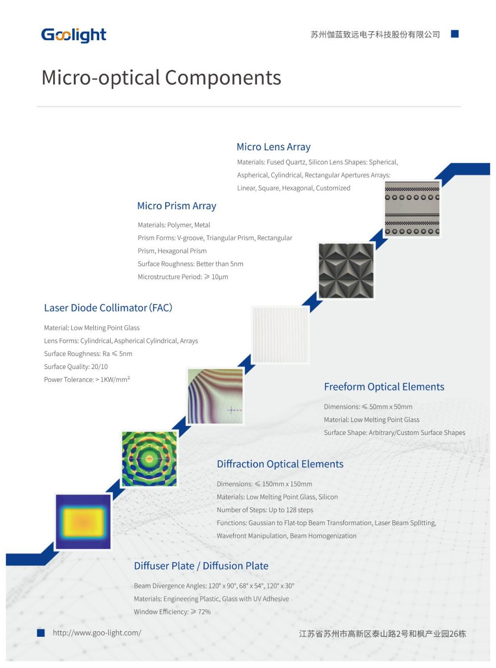 太阳集团tyc4633具备从研发设计到批量制造的全流程能力,满足客户不同的业务诉求。微纳光学产品线涵盖硅、熔石英、聚合物以及多种光学玻璃,波长可覆盖紫外到近红外。本次将展示包含核心产品MLA,DOE,FAC,Diffuser 等众多热点产品。