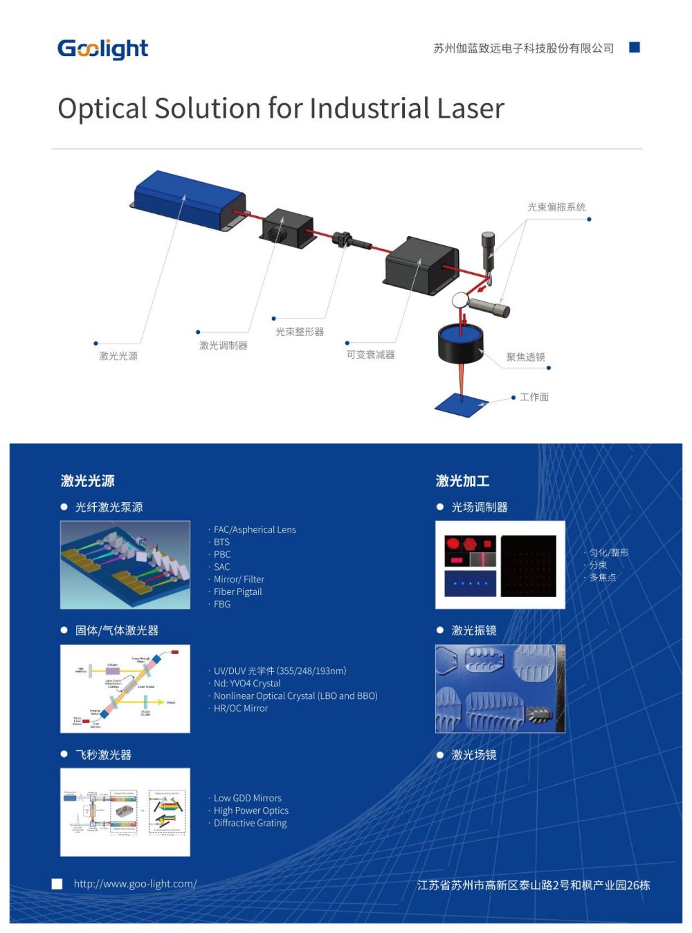 基于我司镀膜平台,冷加工平台,微纳加工平台和光纤光学平台,为客户提供激光工业应用的核心的光学元件。